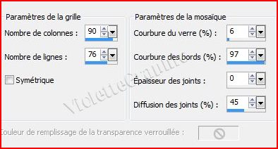 6 - Effets/Effets de Textures/Mosaïque de verre réglages suivants :