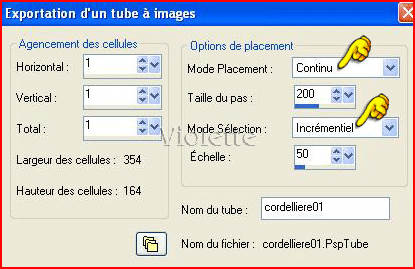 régler l'échelle et le pas au besoin selon la grosseur de la cordelière que vous désirez: