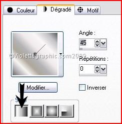 9 - Activer l'outil peinture et remplir de dégradé acier angle :45° répétition 0
