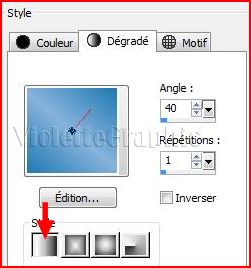 Configurer en arrière-plan un dégradé linéaire angle: 40°/Répétition: 1/Inverser coché