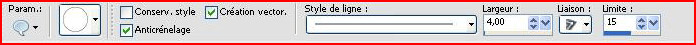 choisir la forme cercle /style de ligne : plein/largeur: 4
