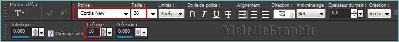 Cordia New /taille : 26/ vectoriel/ crénage : 16