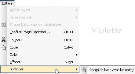 Dans la barre de menu /Cliquer sur "Edition" puis sur "Dupliquer" choisir "image de base avec objet"