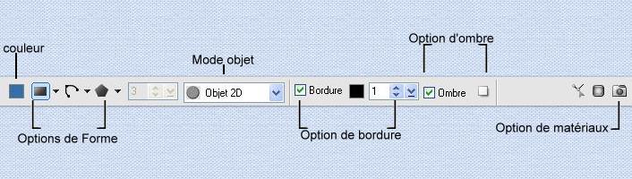 Quand on active un outil différentes options s'affichent dans la barre d'outils Attributs