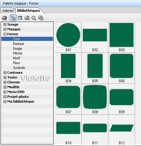 Ouvre votre Palette Magique /Onglet Bibliothèques/Forme