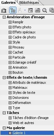 Les Galeries contiennent différents effets que vous pouvez appliquer à vos images