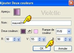 cette boîte de dialogue s'ouvre : donner un nom à votre dégradé