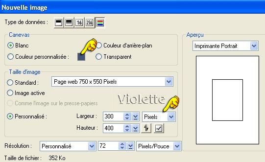 3 - Fichier/Nouvelle image de 300 x 400 pixels :