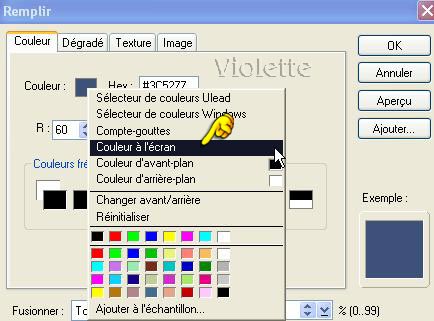 un petit menu s 'affiche vous permettant d 'aller choisir votre couleur dans différents menus