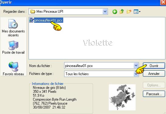 Rechercher le dossier où vous avez enregistré votre pinceau