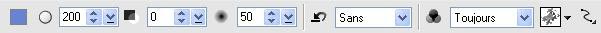 configuré ainsi : couleur bleue / Taille : 200 / bords doux : 50 / Options prédéfinies : sans /Mode fusion : Toujours