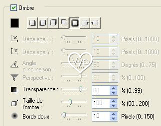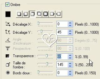 11 - Activer le tube Marif Gauthier01 Ajuster/redimensionner à 80%/cocher case objet sélectionné Edition/Copier/Edition/coller comme objet Mode du calque/chevauchement/transparence : 25 12 - Dupliquer/passer le mode à Luminosité seule /transparence : 17 13 – Objet/Ombre : la 1ère par défaut