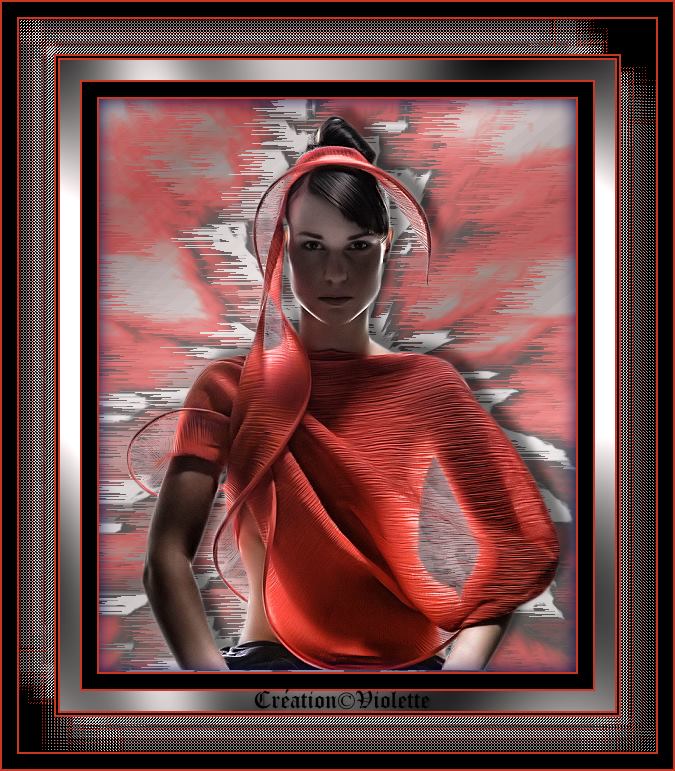 Clic droit / désélectionner 13 - Ouvrir la couche supérieure Objet/ombre/la 3ère par défaut/couleur noire Clic droit / désélectionner 14 - Objet/Fusionner Tout 15 – clic droit/Tous 16 - Sélection/Inverser ( on ne voit plus rien ) 17 - Eye Candy 3.01/Cutout /valeurs par défaut /couleur de l’ombre : noire 18 - Ajuster/Etendre le canvas : 2 pixels couleur #cb3725 19 - Ajuster/Etendre le canvas : 15 pixels couleur noire 20 - Ajuster/Etendre le canvas : 2 pixels couleur #cb3725 21 - Ajuster/Etendre le canvas: 20 pixels couleur #ddd6d6 Sélectionner le cadre à l'aide la baguette magique Effets / Graphic Plus/Cross shadow par défaut Clic droit / désélectionner 22 - Ajuster/Etendre le canvas : 2 pixels couleur #cb3725 23 - Ajuster/Etendre le canvas : 2 pixels couleur noire 24 - Ajuster/Etendre le canvas : 2 pixels couleur #cb3725 25 - Ajuster/Etendre le canvas : 35 pixels couleur noire Sélectionner avec la baguette magique Effets / Kang 4 /Bubblecross Weaves :