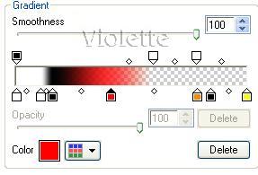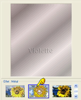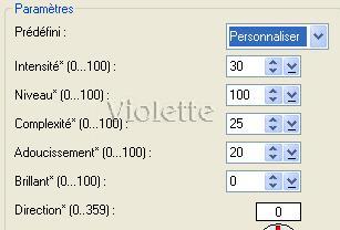 5 - Tracer le dégradé en partant du coin supérieur gauche en descendant vers le coin inférieur droit 6 - Effets/Remplissage et textures / Filtre texture/Effet métal : 30/100/25/20/0 /OK Appliquer l'effet de l'image courante à l'image