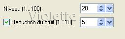 7 - Photo / Affiner/ Affiner/Options : niveau : 20/ réduction du bruit : 5