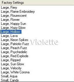 10 - Clic droit/dupliquer le tube/Occulter la copie 11 - Se placer sur la couche du tube original Effets / Alien Skin Eye Candy 5/Nature/Corona : Onglet Factory Settings/large, Hollow
