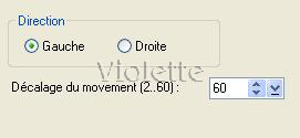 12 - Effets / Déformer/Souffle / Options : gauche /décalage : 60