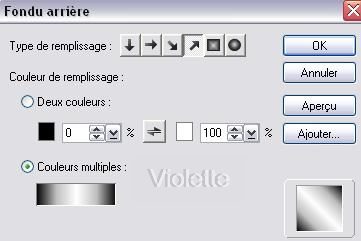 4 – Ouvrir une image fond blanc 450 x 550 pixels / Remplir de couleur foncée Edition/Fondu arrière /couleurs multiples n°7 /linéaire