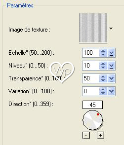 5– Edition/remplir de couleur claire 6- Sélection/Sans 7 – Effets/Remplissage et textures/Textures/Effet : en Relief/ Emboss009.bmp :