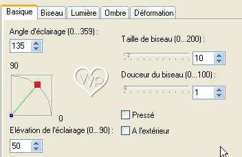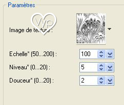 28 - Ajuster/Etendre le canvas/ 5 pixels couleur blanche/ Sélectionner avec la baguette magique Remplir de motif or 29 – Signer 30 – Objet/fusionner tout 31 - Palette Magique/Améliorations d’images/Effets Spéciaux/Eclairage/clic droit sur L43 Modifier et appliquer les Modifications Choisir deux couleurs du tableau ou autres