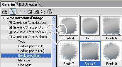 5 - clic droit sur le cadre Bords8 /Modifier les propriétés et appliquer sélectionner la galerie de cadres de bordure le dernier cadre à droite