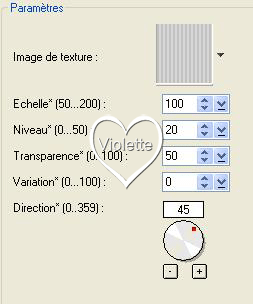18 - Ouvrir une image de 350 x 410 pixels fond blanc/remplir de couleur # E6BDC1 19 - Effets/Effets de Remplissage et Textures/ Filtre texture/ Relief/ choisir bump047