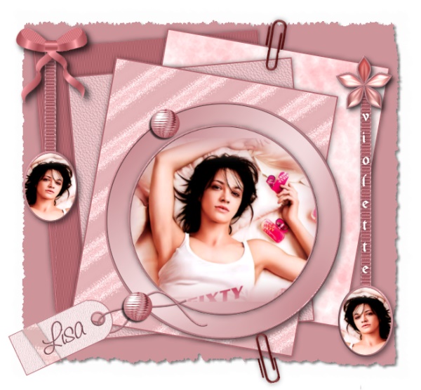 En poser un autre en bas Une fois tout disposé à votre goût Objet/sélectionner tous les objets/Fusionner en un seul objet Activer l’outil texte et écrire le nom de Lisa sur l’étiquette Et votre nom sur le ruban de droite