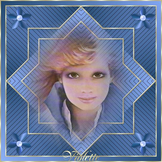 14 – En tenant la touche Maj enfoncée, clic gauche sur les objets fleur et perle pour les sélectionner. Clic droit/Fusionner en un seul objet. Clic droit/Dupliquer de façon à avoir 4 fleurs. 15 – A l’aide de l’outil transformation/Placer des fleurs dans les quatre coins Mettre en place à l’aide des commandes Aligner. 16 - Sur le tube Femme Edition/Copier/Revenir sur le cadre/Edition/Coller comme objet. 17 -Objet/Ombre/répéter le n°11. 18 -Ajuster/Etendre le canvas/Etendre de façon égale/3 pixels couleur blanche. Sélectionner avec la baguette magique/Double-cliquer sur la texture or. Clic droit/sans. 19 - Ajuster/Etendre le canvas/Etendre de façon égale/15 pixels couleur blanche. Sélectionner avec la baguette magique/Double-cliquer sur le dégradé. Entrée pour désélectionner. 20–répéter n°18 21- Signer/ Objets/Fusionner tout. 22- Enregistrer en JPG Optimisé à 80%.
