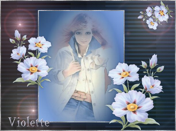 9 - Ouvrir une nouvelle image de 295 x 385 couleur blanche Dans la Palette Magique/Galerie de remplissage/dégradé double-cliquer sur dégradé G06 ( ou G13 pour du rose ) 10 - Effets/Remplissages et textures/textures/store .11 – Ajuster/Etendre le canvas/côcher Etendre les côtés de façon égale/3/couleur noire. Sélectionner avec la baguette magique/dans la Palette Magique/double-cliquer sur la texture argent. Sélection/sans. 12 – Sur le tube femme/Edition/Copier/Edition/Coller sur le tableau. Ombre /la 1ère/ taille de l’ombre : 106. Fusionner tout. 13- Edition/Copier/Edition/Coller sur le fond du tag. Ombre /la 5ère/par défaut. 14 – Edition/copier le tube fleur. Dupliquer /redimensionner à 75%. Placer à gauche du tableau. Dupliquer/redimensionner à 50%. Placer en haut à droite du tableau. 15 – Sur chaque tube fleur/Ombre le 5ème par défaut. 16 - Image/Ajouter des bordures: 3/ sélectionner et remplir de texture argent. 17 - Signer. Fusionner tout 18 - Exporter en JPEG optimisé à 80%.