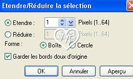 15 – Objet/Fusionner tout 16 –A l’aide de la baguette magique sélectionner l’intérieur de la sélection ( objet 13) 17 - clic droit/Etendre/Réduire :