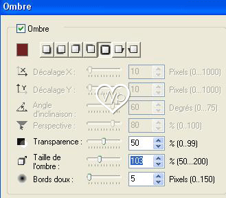 18 –Clic droit/Convertir en Objet 19- Activer le tube /Edition/Copier/Edition/Coller dans la sélection/Dupliquer 20 – Objet/Ombre :