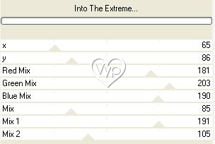 5- Edition/remplir de couleur claire clic droit /désélectionner Dupliquer 6 - Effets/ Andrew’s filter 59/Into the Extreme: