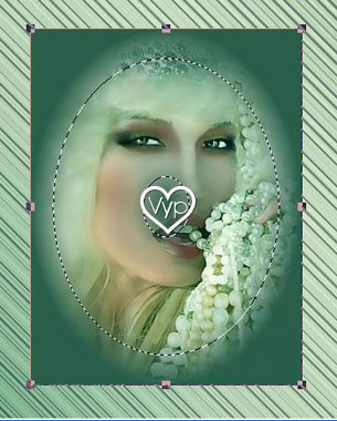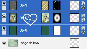 Désélectionner 14 - Activer l’outil de dessins de contours/Mode 3D/ellipse /paramètres de biseau : 2 pixels Tracer une ellipse de 290 x 370 pixels Dans la palette magique : double-cliquer sur le motif or Placer l’éllipse sur le l’ovale du visage Objet/ombre le 5ème par défaut 15 – dans la palette des couches/sélectionner les trois couches supérieures Clic droit /Aligner/centrer les deux Clic droit/Fusionner en un seul objet :