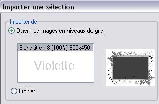 5 - Photo/Affiner/Affiner/Options : 20 6 - Ouvrir le masque Suzanna Ajuster/convertir le type de données/Niveaux de gris fermer l'original 7 - Sélection/Importer une sélection
