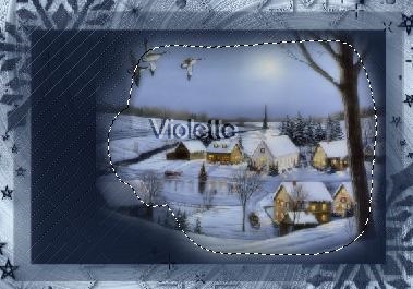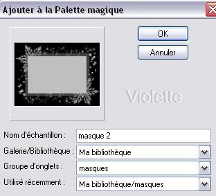 10 - Dans la Palette Magique/ double-cliquer sur votre masque Votre masque apparaît en pointillé 11 - Activer l'outil Transformation/cliquer sur l'icône "Action sur sélection" Attraper les poignées du haut et du bas et étendre sur toute la surface 12 - Sélection/Convertir en objet 13 - Edition/Remplir de couleur foncée 14 - Dupliquer Mode de la couche supérieure : Multiplier 15 - Sélectionner les deux couches Fusionner en un seul objet 16 - Effets/L&K Paris