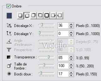 clic droit/Désélectionner 15 - Activer votre tube personnage / Edition / Copier/Edition/Coller comme objet poser le sur la gauche 16 - Objet/Ombre : la 2ème / configurée ainsi : couleur foncée
