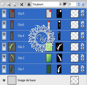 7 - une fois toutes les pétales colorées ,remonter la couche de la tige 8 - clic gauche sur chaque couche pour les sélectionner