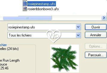 11 - Objet/Sélectionner tous les objets 12 – Objet/ Fusionner en un seul objet Activer l’outil cachet/Ajouter les objets que vous souhaitez et décorer selon vos goûts 13 – une fois la décoration faite à votre goût ( à ce stade, vous pouvez enregistrer en format.ufo pour éventuellement changer la décoration ) sélectionner tous les calques des objets ( attention à ne pas sélectionner la couronne) 14 -Fusionner en un seul objet 15 - Objet/Ombre/la 5ème taille de l’ombre 102 16 – Sélectionner le calque de la couronne et celui des objets /Fusionner en un seul objet 17 - Objet/Ombre la 1ère par défaut 18 – Edition/Copier/Edition/Coller comme objet votre ruban 19 - Objet/Ombre la 1ère par défaut 20 - Objet/Sélectionner tous les objets 21 – Objet/ Fusionner en un seul objet 22 – Signer 23 – Enregistrer en format ufo 24 - Vous pouvez installer votre couronne sur un joli fond Enregistrer en format JPEG Optimisé