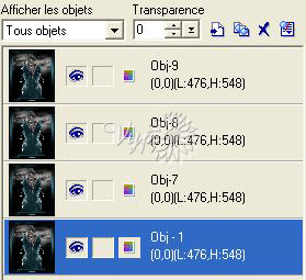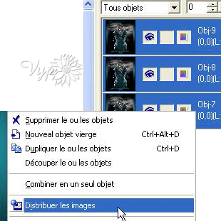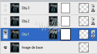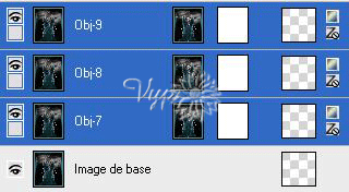 6 – Ajuster /Ajouter des bordures : 2 pixels couleur claire 7 - Ajuster /Ajouter des bordures : 20 pixels couleur foncée 8 – Effets/Graphic Plus /Cross shadow par défaut faire une seconde fois 9- Ajuster /Ajouter des bordures : 2 pixels couleur claire 10 – Placer votre signature 11 - Objet/Fusionner tout 12 - Clic droit/tous/clic droit/Convertir en objet Dupliquer 2 fois 13 - Renommer les calques supérieurs Objet 2 et Objet 3 Fermer les 14 – Se placer sur le calque objet 1