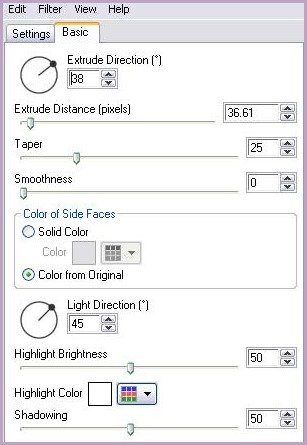 19 - Effets/Eye Candy 5 Impact /Extrude/ Large Offset, Medium Tapper Non Smoothing Onglet Basic: