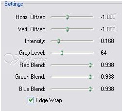 10 - Objet/Fusionner Tout 11 - Effets/FM Tile Tools/Blend Emboss valeur ci-dessous :