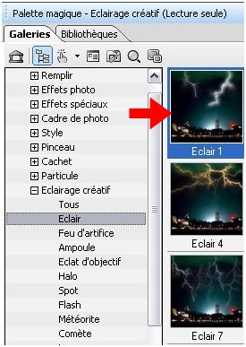 20 - Palette Magique/Amélioration d'images/Eclairage Créatif/EclairDouble-clic sur la vignette "Eclair 1" :