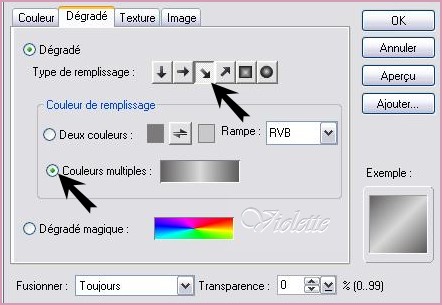 11 - Edition/Remplir de dégradé: chercher votre dégradé et configurer le ainsi: