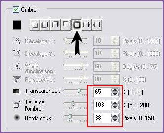 Mode du calque : Luminosité seule Transparence : 30 Objet/Ombre/la 1ère: X et Y = à 2