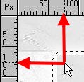 10 - Affichage/Règles cliquer au point de jonction des lignes X et Y à 75 pixels: