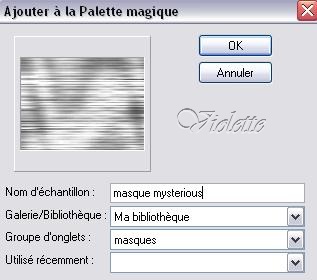 3 - Ouvrir votre masque "Maskerles2" Ajuster/Convertir le type de données/Niveaux de gris Fermer l'original 4 - Sélection/Importer une sélection sélection/Ajouter à la palette Magique/Ma Bibliothèque/Dossier masques