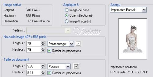 13 - Activer le tube " Pascale_NaturalBeauty_June2008 " Edition/Copier/Edition/Coller comme objet Ajuster/Redimensionner/Objet sélectionné coché: 70 %