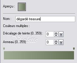 15 - Placer en avant-plan la couleur #9fab95 et en arrière-plan la couleur #626f52 Préparé un dégradé deux couleurs ( tutoriel pour fabriquer un dégradé ICI )