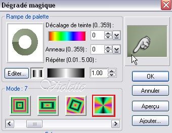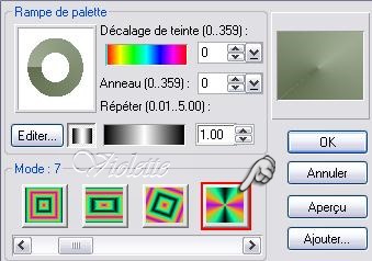 16 - Dans la Palette Magique/Amélioration d'images/Dégradéclic droit sur le dégradé Modifier et appliquer les modifications clic droit sur "Editer" double-clic sur votre dégradé deux couleurs et cliquer sur le Mode 7