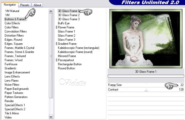 33 - Effets/Unlimited/Buttons and Frame/ 3D Glass frame 1 : size: 22 Clic droit/désélectionner